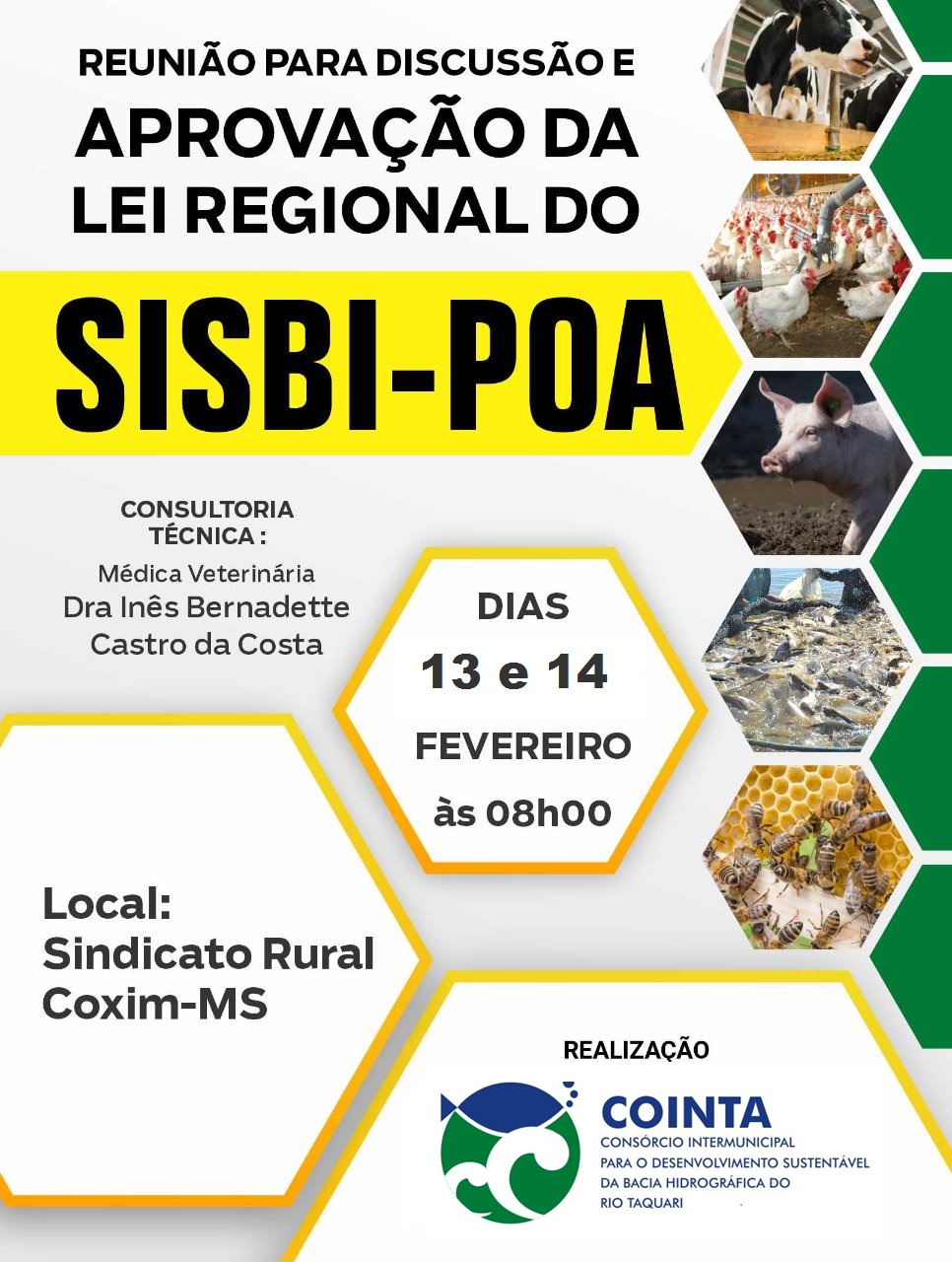 O COINTA convida os Municípios consorciados para participarem da reunião para discussão e aprovação da Lei Regional do SISBI-POA. Os trabalhos serão conduzidos pela médica veterinária Drª. Inês Bernadette Castro da Costa.