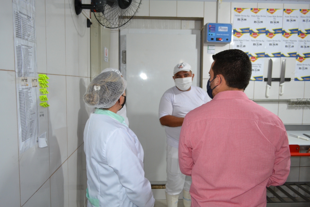 A médica veterinária Vanessa Paulino Matheus apresentou uma unidade de beneficiamento de carne e produtos cárneos para conhecer a estrutura e orientar o proprietário Guilherme Defante Gomes quanto ao processo de registro junto ao SIMC-COINTA.