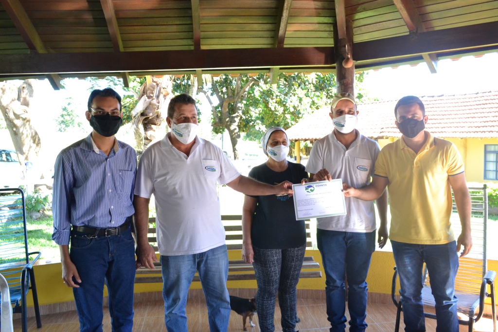 A entrega aconteceu na sede do estabelecimento com o vice-prefeito, Roni Cota, acompanhado da secretária Municipal de Agricultura e Desenvolvimento, Suelen Guimaraes Furquim, do subsecretário da pasta, Fernando Barbosa Martins, do o coordenador do Serviço de Inspeção de produtos de origem animal executado pelo COINTA, Rafael Rezende, do subcoordenador do COINTA, biólogo e mestre em saneamento ambiental e de recursos hídricos, Cleiton Oliveira dos Santos, e da médica veterinária, Marge Vieira Martins da Silva de Carvalho, que agora com o selo do SIM-COINTA o estabelecimento tem a possibilidade de ampliar o seu mercado.