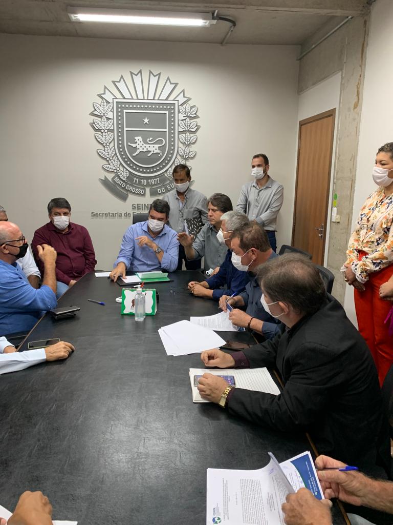 Os prefeitos dos municípios consorciados e a Secretaria Executiva COINTA, composta pelo chefe do Executivo de Sonora e presidente do Consórcio Enelto Ramos da Silva, pelo coordenador geral, Pedro Freitas de Oliveira e coordenador adjunto, Cleiton Oliveira dos Santos, se reuniram com o secretário Eduardo Riedel, para a assinatura de convênio para a aquisição de maquinários para o Consórcio.