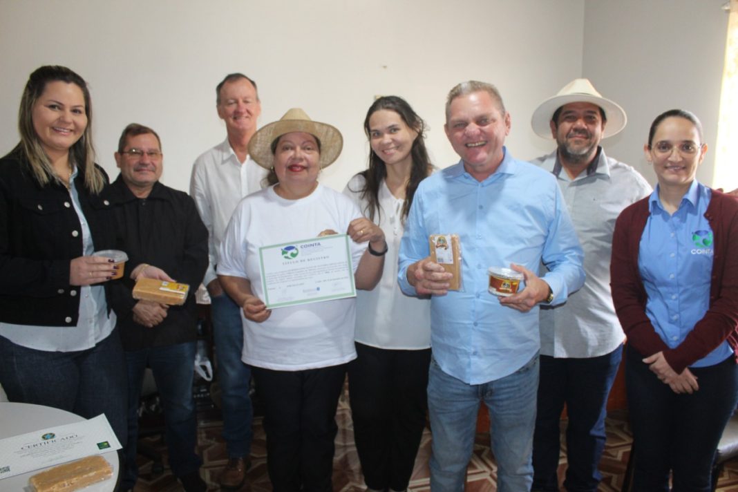 A entrega aconteceu na sede da Secretaria de Agricultura juntamente com a AGRAER e COINTA, entregou na manhã desta sexta-feira (23), para Lindamar Rodrigues da Fabrica de Doces – Minas Gold, o certificado do SIM – COINTA , que permite a comercialização de produtos. Estiveram presentes o Prefeito Gustavo Sprotte; Vice-Prefeita Gediana Rocha; Secretário de Agricultura Gelson Guimarães; Coordenador Municipal Agraer – Alfeu Ohlweiler juntamente com a Médica Veterinária do COINTA – Jacqueline Aparecida Barbosa Rodrigues e o Secretário de Educação – Humbeto Afonso.